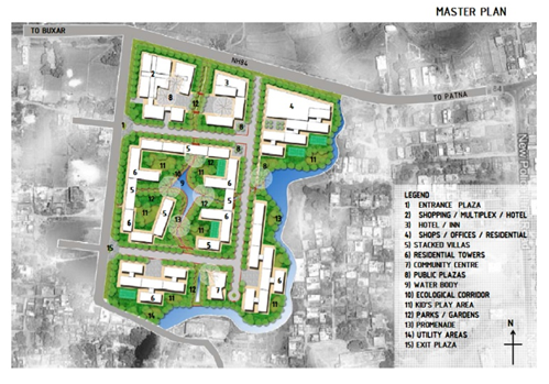 Being developed for Bihar Housing Board, on a 17.5 acres land in this small town of Bihar, this project is envisaged as the engine of growth for this locality. The project has a well thought of mix of Residential and Commercial usages and a good mix of High and Low rise built spaces in order to facilitate a fine living for the dwellers and still create maximum revenue generation. Some relatively innovative concepts of a dedicated ecological corridor and undressed green spaces have been devised to create a sustainable environment within and around the complex. This work is in conjuction with Enarch.
